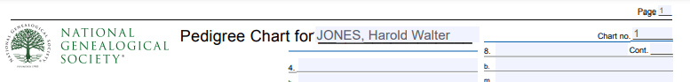 Since we are starting on your family, you will fill in information about your father. First you need to record and fill in the area at the top for ‘Name and/or Date” and to the right the area for ‘Place”.